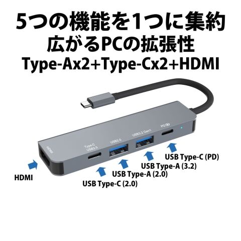 ◆これ一つで、ポートを5つに拡張できるため、複数の周辺機器を同時に接続可能です。