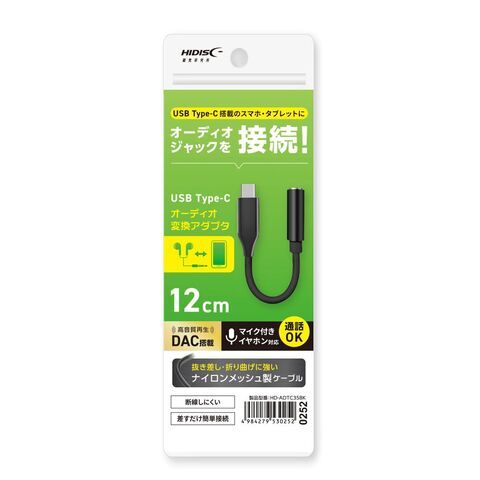 HIDISC USB Type-C対応 オーディオ変換アダプタ(ブラック) HD-ADTC35BK 【返品種別A】