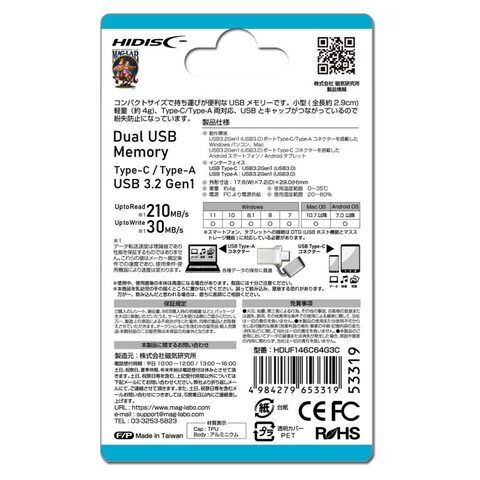 HIDISC Type-C & Type-A 両対応 USBフラッシュメモリ 64GB HDUF146C64G3C 【返品種別B】