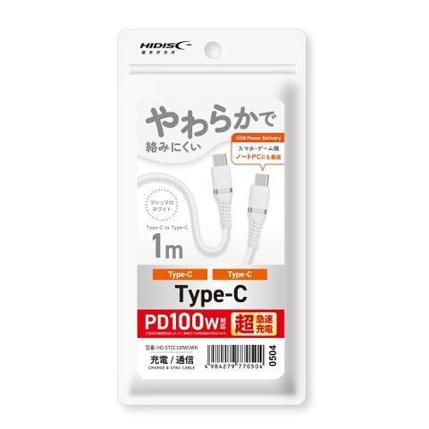HIDISC PD100W対応 Type-C to Cケーブル 1m(ホワイト) HD-STCC100W1WH 【返品種別A】