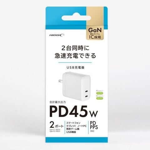 HIDISC PD45W対応 USB C×2ポート USB充電器(ホワイト) HD-AC2P2C45WH 【返品種別A】