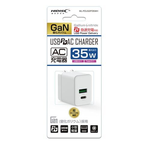 HIDISC Type-C/A 35W AC充電器 (窒化ガリウム対応) ML-PDUS2P35WH 【返品種別A】