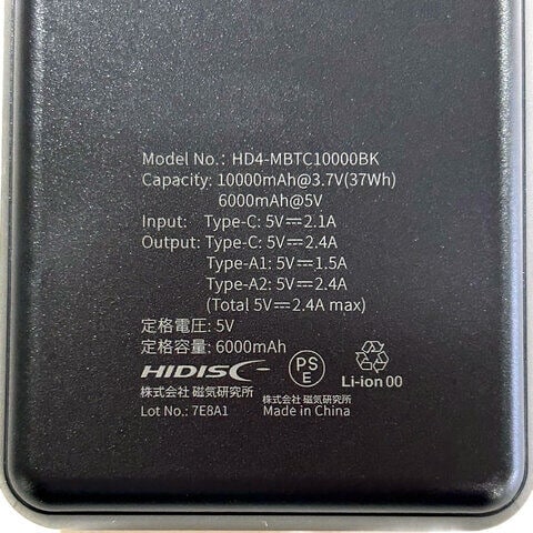 HIDISC 薄型軽量 10000mAh モバイルバッテリー(ブラック) HD4-MBTC10000BK 【返品種別A】のレビュー