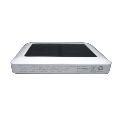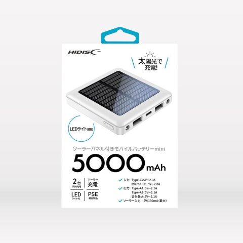 HIDISC ソーラー1面パネル付き 5000mAh モバイルバッテリー HD4-MBTCSP1L05WH 【返品種別A】