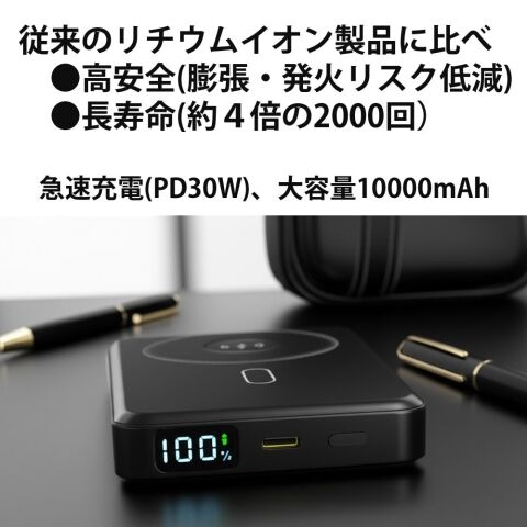 HIDISC 長寿命+超安全 準固体電池モバイルバッテリー 10000mAh (ブラック) HD4-SSMBTC30W10DSBK 【返品種別A】