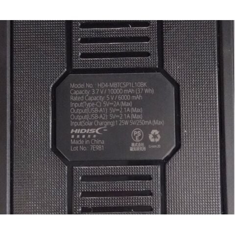 HIDISC ソーラーモバイルバッテリー 10000mAh|太陽光充電・LEDライト搭載・2台同時充電対応 HD4-MBTCSP1L10BK 【返品種別A】
