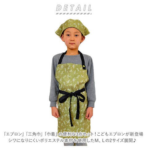 エプロン:[着丈]43cm [横幅]55cm [首紐の長さ]31~40cm(調節可能) [腰紐の長さ]9~14cm(調節可能) [対応身長(子供用)]90~120cm