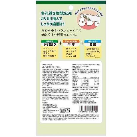牛皮、米粉、山羊乳(脱脂)、香料、着色料(二酸化チタン)、保存料(ソルビン酸K)