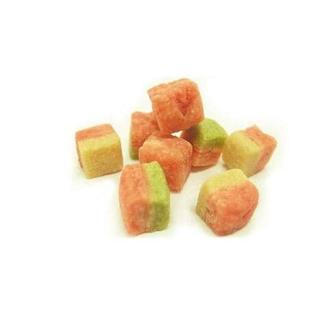 ■原材料:小麦粉、鶏肉、鶏ささみ、チーズ、牛肉、でん粉類、ほうれん草、ソルビトール、グリセリン、膨張剤、着色料(赤106、黄4、黄5、青1、酸化チタン)、保存料(ソルビン酸K)、pH調整剤、食塩、酸化防止剤(エリソルビン酸Na)、香料