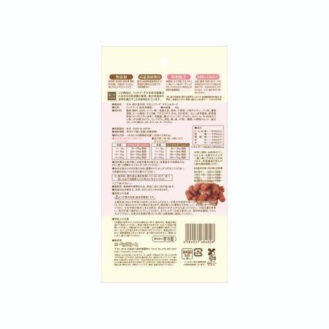 鶏肉(胸肉、ささみ、レバー等)、脱脂大豆、馬肉、小麦粉、小麦グルテン、パン粉、植物油脂、ビール酵母、オリゴ糖、マグロエキス(DHA、EPA含有)、セレン含有酵母、軟骨抽出物(コンドロイチン含有)、乳酸菌、鶏コラーゲンペプチド、グリセリン、ソルビトール、タピオカ加工でん粉、ミネラル類(カルシウム、リン、ナトリウム、亜鉛、銅、鉄、ヨウ素)、糖類、リン酸塩(Na、K)、塩化コリン、ビタミン類(B1、B2、B12、D3、E)、グルコサミン