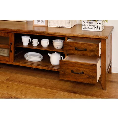 ◆ヴィンテージ感のある木の風合いが、空間に豊かな表情をつけるローボードです。