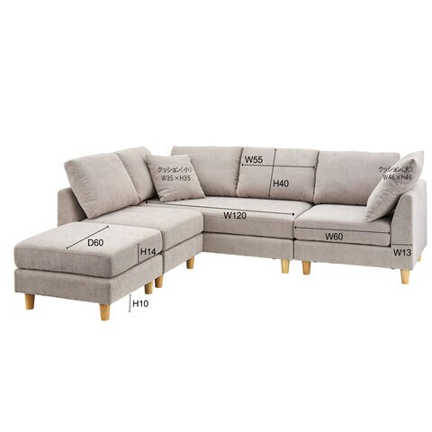 - サイズ:1人掛:幅60×奥行73×高さ74×座面高さ39 2人掛:幅133×奥行73×高さ74×座面高さ39 コーナー:幅73×奥行73×高さ74×座面高さ39 オットマン:幅60×奥行60×高さ39