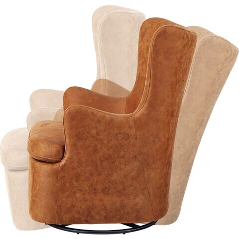 ◆クロスレザー(レザーのような風合いのポリエステル生地)を使ったチェアです。回転式でロッキング機能付きです。