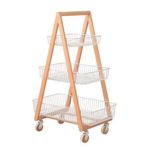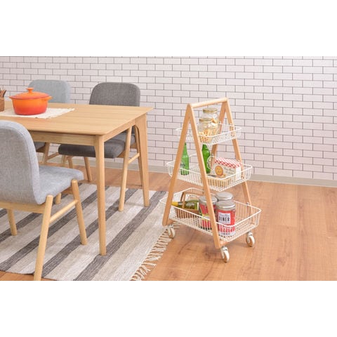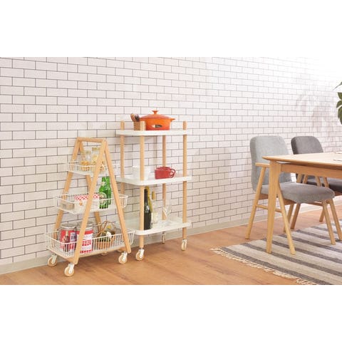 ◆天然木とスチールの優しい色合いが、北欧ナチュラルなテイストを演出するバスケットワゴン”Sylph”。