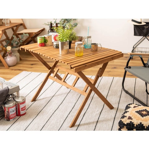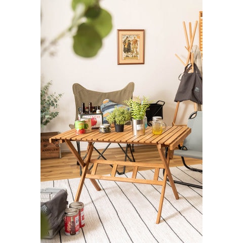 ◆アウトドアやテラスなど様々なシーンで活躍するロールトップテーブル。