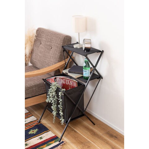 東谷 フォールディングマガジンラック(ブラック・幅42×奥行57×高さ77.5cm) MIP-99BK 【返品種別A】