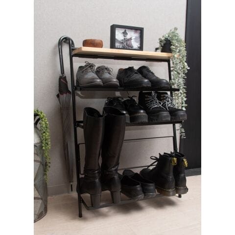 東谷 アイアンシューズラック(幅60×奥行32.5×高さ86.1cm・ブラック) NIT-15BK 【返品種別A】