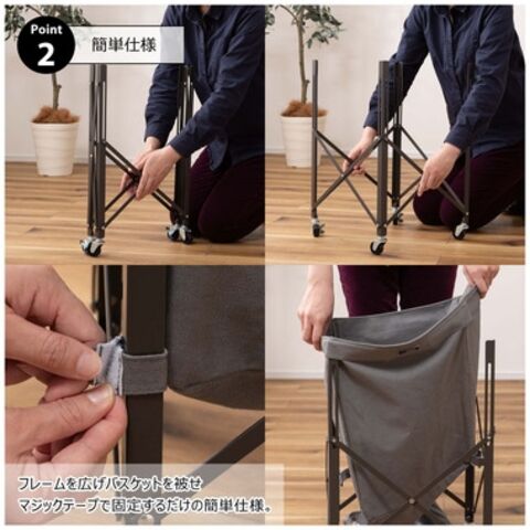 ◆フレームを広げバスケットを被せマジックテープで固定するだけの簡単仕様。