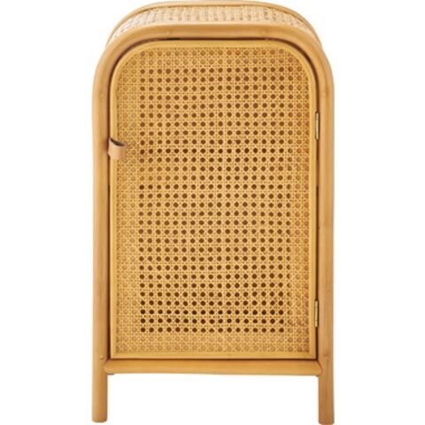 ◆丸みを帯びたフォルムに全体に編み込まれたカゴメラタンが個性的。