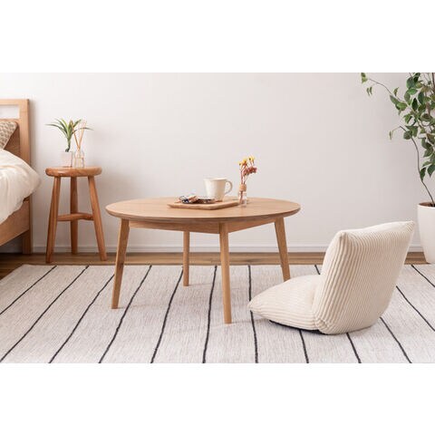 ◆角がなくどこからでも座ることのできる丸い形は、おしゃれなローテーブルとしてぴったり。