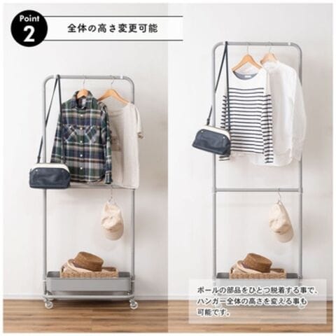 ◆中間ハンガーやBOXの高さを変更出来るので、使いやすい形に変えて使用可能。
