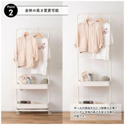 ◆ポールの部品をひとつ脱着する事で、ハンガー全体の高さ調整も可能。