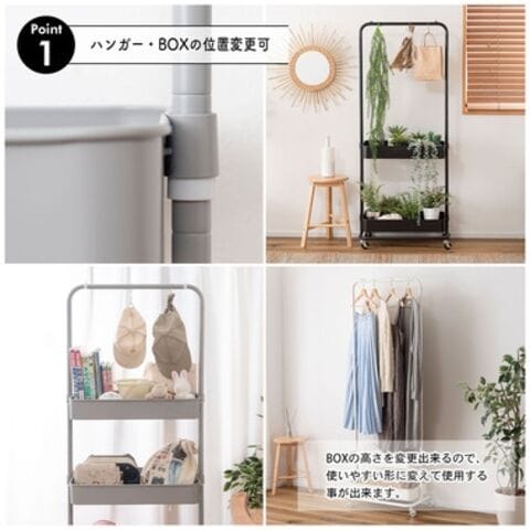 ◆シンプルデザインで場所を選ばないハンガーワゴン。