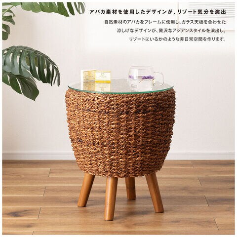 ◆自然素材のアバカをフレームに使用し、ガラス天板を合わせた涼しげなデザインが、贅沢なアジアンスタイルを演出。