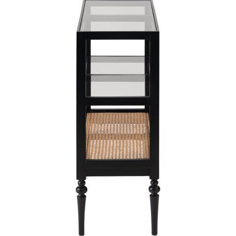 ◆天然木とラタンを使用したナチュラルなイメージのデザインながら、ターンドレッグ(ろくろ脚)を採用することで、クラシカルな雰囲気も感じられるオープンシェルフ&サイドテーブル。