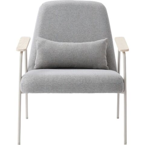◆ライトグレー色の細いスチール脚に、やさしい色合いのファブリックと木部を合わせたデザインが柔らかくナチュラルな印象のチェア。