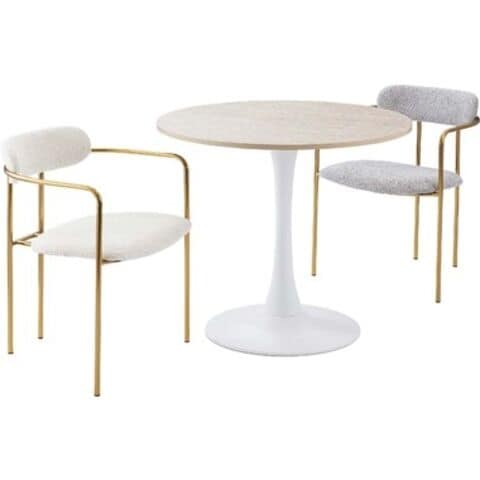 ◆大理石調の天板とホワイトの脚部が美しい印象を与える。