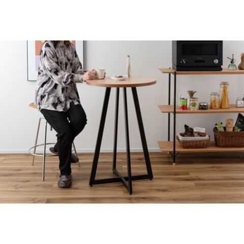 ◆温かみのある木目調の天板と、圧迫感を与えにくいアイアンの脚部を組み合わせたハイテーブル。