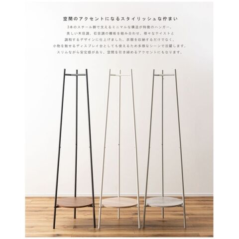 ◆3本のスチール脚で支えるミニマルな構造が特徴のハンガー。