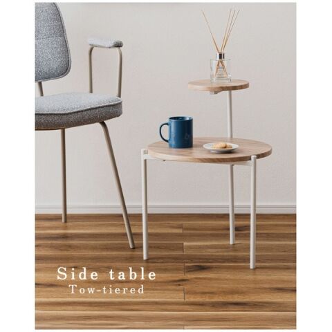 ◆段形状の天板が特徴的なサイドテーブル。