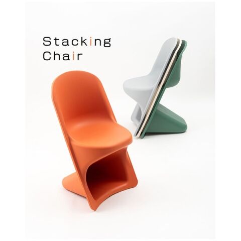 ◆滑らかな曲線が生み出す独特のフォルムが目を引くスタッキングチェア。