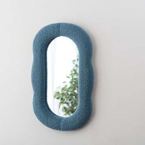 ◆やわらかな素材のフレームが印象的な、柔らかな表情のミラー。