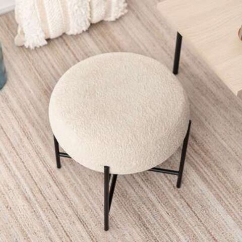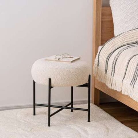 ◆マットな質感のブラックスチールと、落ち着いた色味の生地が織りなすコントラストが目を引くスツール。