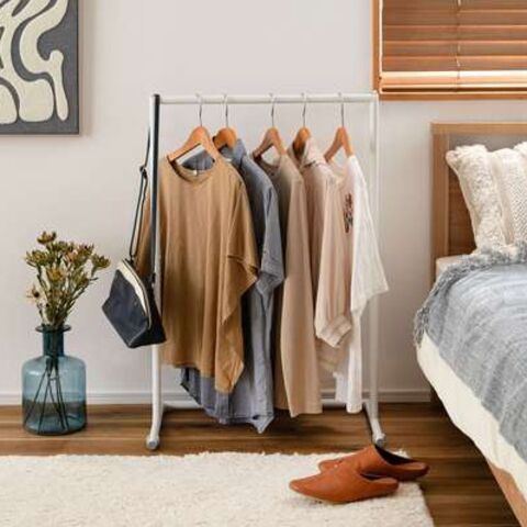 ◆洋服を掛けてコーディネートを楽しむだけでなく、玄関やリビングでは掛けるアイテムによってディスプレイラックのようにも使えるのが魅力です。