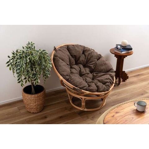 ◆天然ラタンのぬくもりと、ボリュームのあるクッションの贅沢なリラックス感で、読書やティータイムがもっと穏やかで心地よいひとときに。