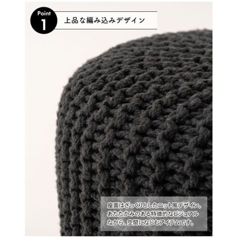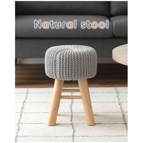 ◆ざっくりとしたニット風デザインと、天然木の組み合わせが魅力的なスツール。