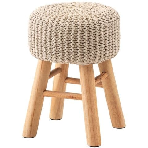 ◆ざっくりとしたニット風デザインと、天然木の組み合わせが魅力的なスツール。