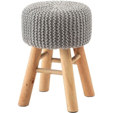 ◆ざっくりとしたニット風デザインと、天然木の組み合わせが魅力的なスツール。