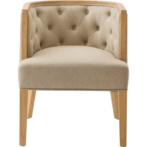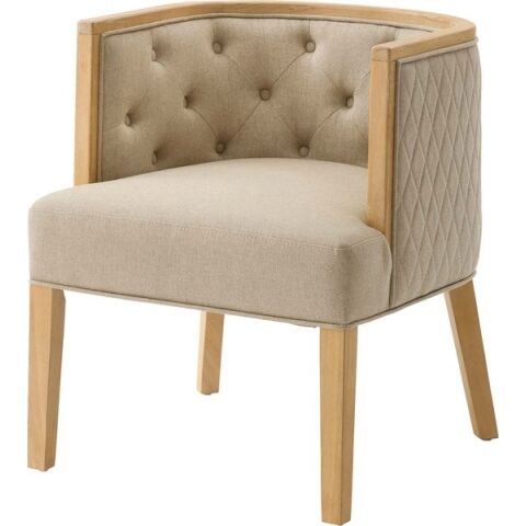 ◆ボタン留めのディテールや、緩やかなカーブを描く脚部など、伝統的な意匠を散りばめながらもグレーとベージュの穏やかなトーンの生地で、落ち着いたニュアンスカラーで仕上げました。