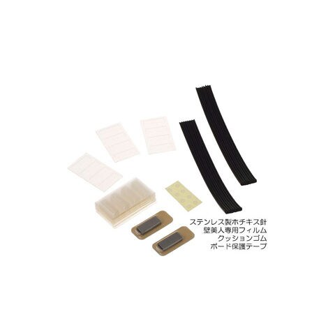 商品付属の壁美人専用ホチキス針はサビに強いステンレス製。