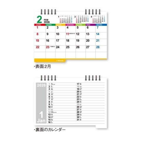 新日本カレンダー 2026年 卓上カレンダー カラーインデックス 卓上カレンダー 8516 【返品種別A】