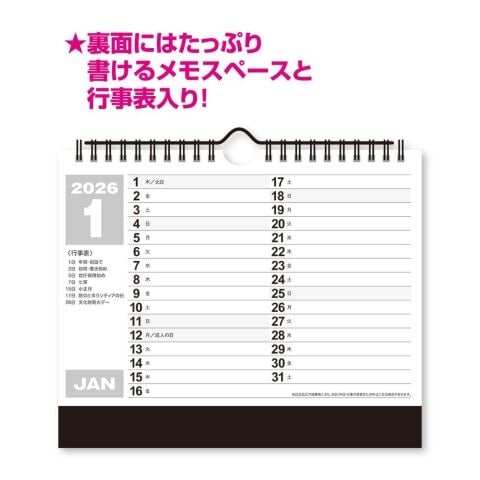 ◆表面にはたっぷり書けるメモスペースと行事表入り!