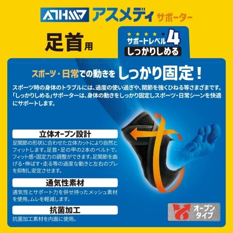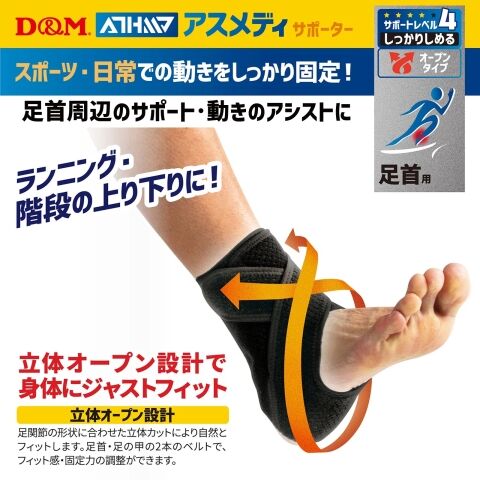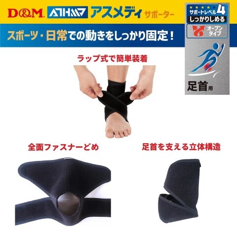 D&M アスメディーサポーター・足首用【1枚入り】(ブラック)フリーサイズ サポートレベル4 しっかりしめる オープンタイプ DM-108663 【返品種別A】
