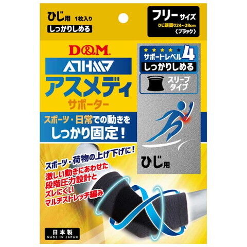 D&M アスメディーサポーター ひじ用 1枚入(ブラック・サイズフリー:24~28cm) サポートレベル4 しっかりしめる スリーブタイプN DM-109677 【返品種別A】
