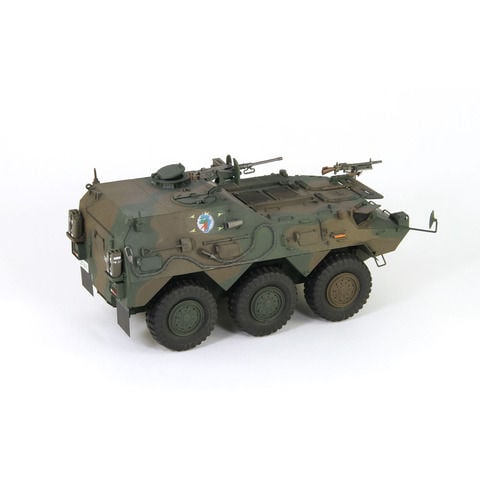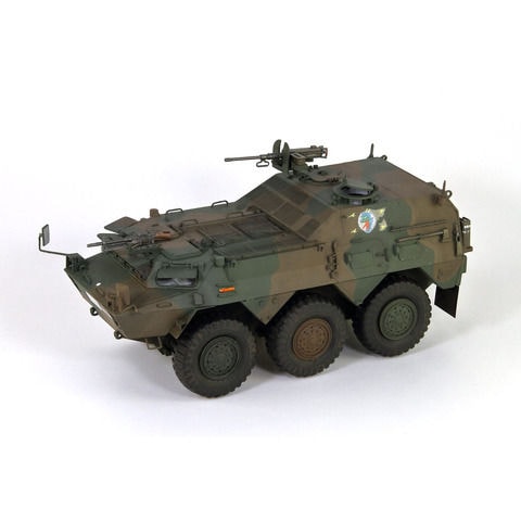 後部兵員室に6名の指揮通信要員を収容し、高速道路を走行可能な高い機動力と、6輪駆動ながら前4輪のステアリング機構により軽快な運動性を持つ車両です。
