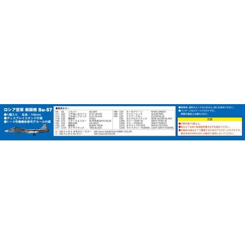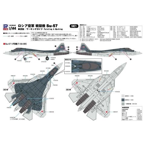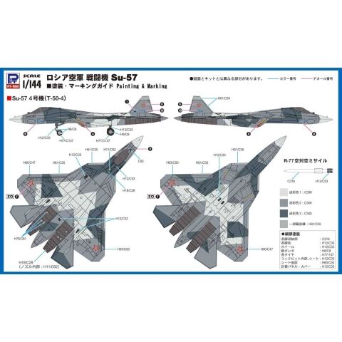 キットは、2017年にロシア空軍により軍制式名称をSu-57と決定されたことに伴い、金型を4号機以降の機体用に一部改修。